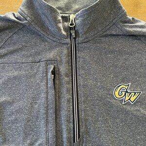 Pre-owned Cutter & Buck George Washington University "Adapt Eco Knit Heather Gray Men's Quarter Zip Pullover" in size medium. Excellent, like new condition. Worn once.