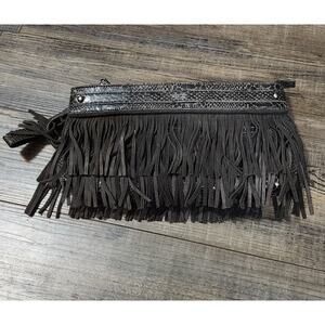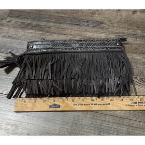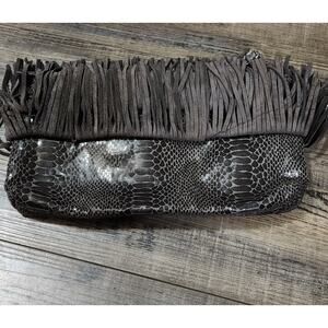 Pre-owned Express Dark Brown Fringe Clutch Bag Purse. Bx37