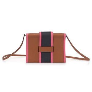 -The bag features an optional waist-length leather shoulder strap and a facing leather closure.