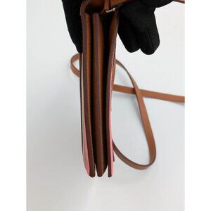 -This is an authentic Hermes Evercolor H Passant Clutch in Brown and Rose. This stylish wearable wallet is crafted of grained calfskin leather in brown and rose pink.