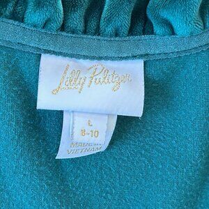 Pre-owned Lilly Pulitzer girls "little skipper velour pullover" in size 8-10 years. Dark green. Excellent, like new condition.