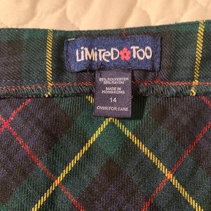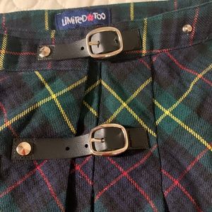 1) Navy Plaid Wrap skirt with button and buckles. Limited Too - Girls Size 14