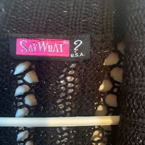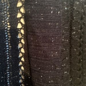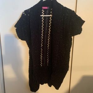 1. Black open knit with silver threading short sleeve cover up type sweater