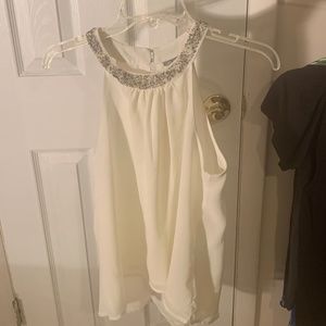 1) Off-white sheer sleeveless top w/ neckline beading. SIZE S