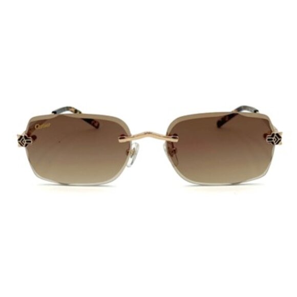 Panthère de Cartier sunglasses, rimless metal, smooth golden finish, rectangular shape and brown gradient lenses.