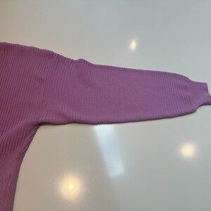 Ribbed lavender sweater, soft nylon materal. Wider sleeves with a wide, high waistband for a more cinched look at the waist.