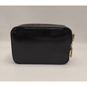 -Its zip closure opens to a black fabric interior with slip pockets.