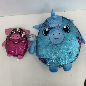 Preowned Shimmeez Sequin Unicorn Plush Stuffed Animals LOT 2