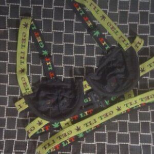 Herb themed bra with clasp back closure and adjustable straps. Solid Cup color that is underwire. 3 Side cutout straps. Arm straps are adjustable