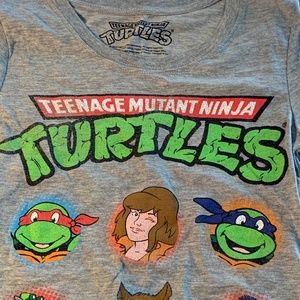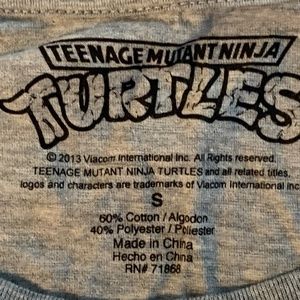 We are in the process of retirement move and there are so many clothes items in good condition. This T-shirt belonged to my daughter and it doesn't look like she ever wore it. This is a Size Small gray colored Tshirt with Teenage Mutant Ninja Turtles Characters on the front. It is labeled Size S - ©2013 Viacom. This T-shirt is very light in weight so it can be easily bundled with other listings of clothing.