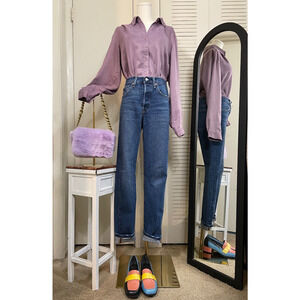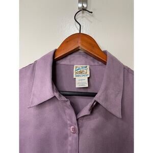 This Travel Smith button-down shirt is a versatile addition to any wardrobe. The collared neckline and button closure create a classic look, while the lightweight polyester material makes it perfect for all seasons. The shirt comes in a beautiful light purple color and features long sleeves with button cuffs. With its regular fit and size L, this shirt is suitable for casual occasions and can be machine washed for easy care. The shirt also has accents of buttons and a solid pattern, making it a stylish choice. Overall, this shirt from Travel Smith is a great option for those looking for a comfortable and timeless piece to add to their collection.
