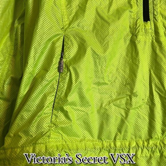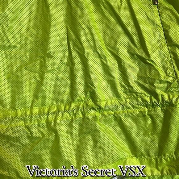 Stand out and stay protected in this high-visibility Victoria’s Secret VSX Sport windbreaker. Designed with a lightweight, water-resistant shell and reflective silver lining, it’s perfect for outdoor runs, cycling, or layering on breezy days. The pullover style features a half-zip front, adjustable hood, front zip pockets, and a back zip pocket for secure storage. Elastic cuffs and hem help keep warmth in while maintaining comfort and mobility.