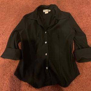3. POINT OF VIEW, made in USA, black button down blouse with 3/4 sleeves. This blouse is labeled a medium, but I believe it is cut small.