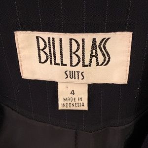 This is a navy blue pinstriped BILL BLASS Blazer. Back in the 1980s and 1990s we really dressed up for work and this was one of my items I wore during those days. There is slight padding in the shoulders so that helps with dating. This blazer is in nice condition and is a SIZE 4. Also included is a Bill Blass fringed scarf. You get both the blazer and the scarf for the one sales price.