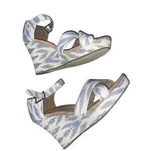 Preowned Womens Toms Peep Toe Chambray Wedge sandals 7.5