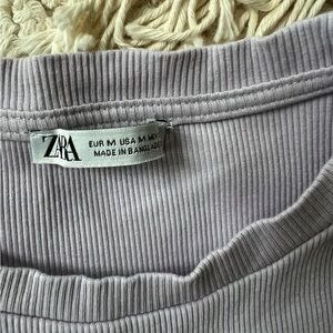 Preowned Zara cropped Lavender ribbed top with ruffle sleeve detail.