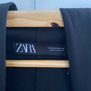 I´m selling this pre-owned Zara faux suede black tie waist jacket with hood and big front pockets.