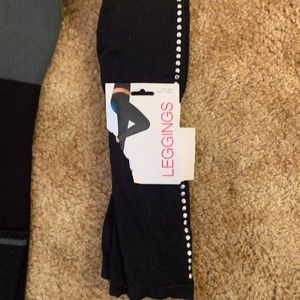DESCRIPTION: Included is short sleeved Turtle Neck Sweater dress with working pockets. This type of sweater dress or long sweater top was all the style years back in those days to be worn with leggings. This dress is a size S and is labeled MAX Rave. Also included to complete the vintage feel outfit, is a pair of silver studded black leggings which indicate one size.