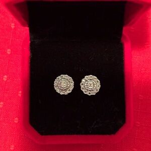 Diamond Flower Cluster stud Earrings 1/4 Ct . Tw Sterling Silver