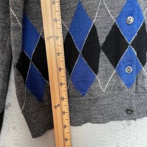 Preppy Academia Merino Wool Argyle Knit Button Front Cardigan Large School