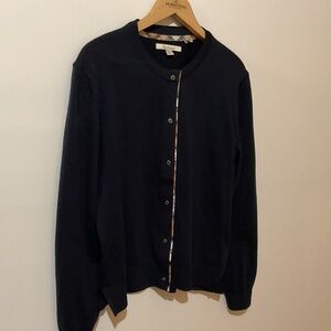 Sweater has the brand’s classic tartan lining along the button placket and the back of the neck.90% cotton 10% Cashmere
