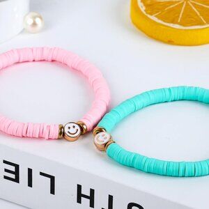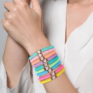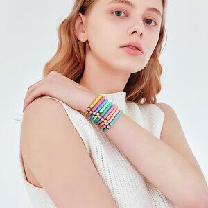 Features: This set includes 18 colorful beaded bracelets, made from waterproof clay polymer, vinyl discs, and beads. Each bracelet is lightweight, smooth, and designed with elastic for easy wear. Perfect for mixing and matching, stacking, or sharing with friends—great for summer vibes and casual outings.
