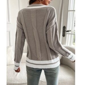 Preppy Cable Knit V-Neck Sweater