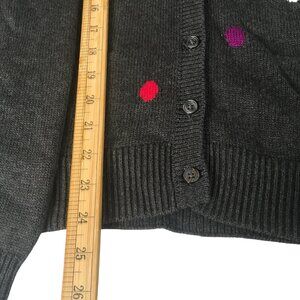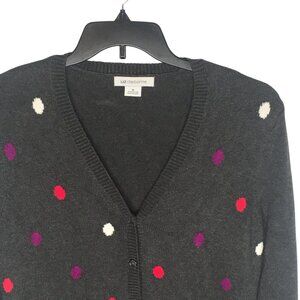 Liz Claiborne Sweater Womens Medium Gray Button Front Cardigan Polka Dot Pockets