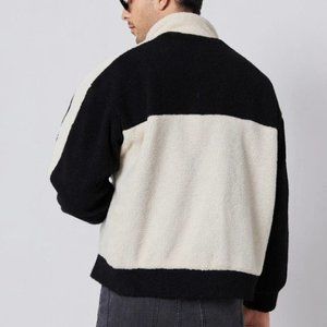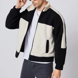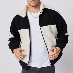 Preppy Casual Men's Colorblock Teddy Coat w/Front Zipper