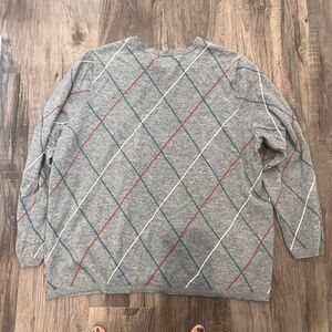 grey plaid, oversized, cashmere knit, preppy style, classic cardigan, fall fashion, winter wear, soft texture, pullover, timeless style