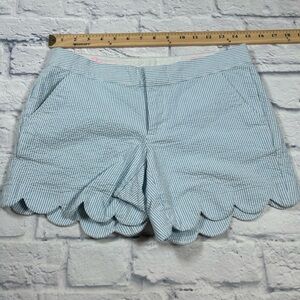 Preppy Lilly Pulitzer Blue and White Seersucker Shorts with Scalloped Hem.