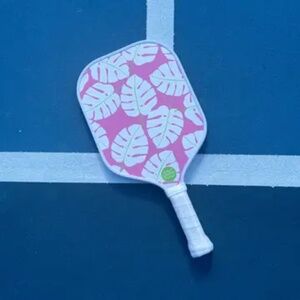 The design that started it all! This vibrant paddle features a brilliant pink background with pops of color from white palm leaves with subtle green accents. For those looking for a floral paddle this is it!
