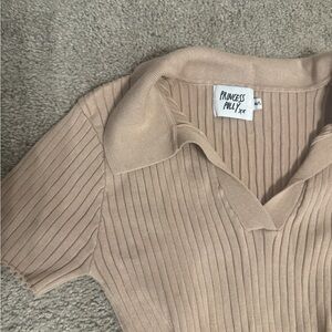 This preppy tan ribbed dress offers a sophisticated look for any occasion. Its soft fabric and flattering fit make it a must-have addition to your wardrobe.