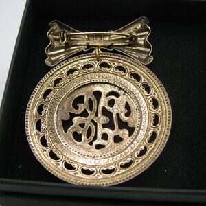 This is a beautiful pin with script lettering. I don't know what the initials are. I worn it and it just looks like script. I purchased this at a vintage jewelry store a long time ago. It is a very good condition. No damage.