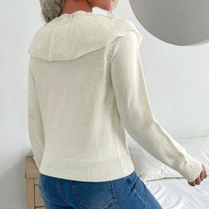 Preppy Womens Eyelet Detail Pearls Beaded Bow Front Sweater