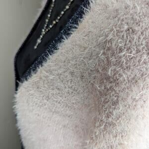 Preppy Soft pink and black fuzzy cardigan with button up front