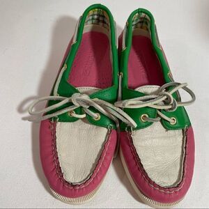 Preppy Sperry Topsiders Loafers in Pink Green and White size 6M