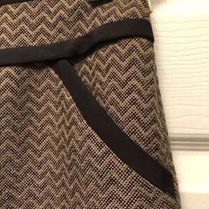 This skirt is in like new condition. It is a wool blend and has piping around the top. It also has pockets!!! How exciting is that? It is lined. It is approximately 15 1/2” long.