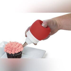 Prepworks by Progressive 4-Piece Frosting Bulb Decorating Kit-with 3 Piping Tips, Red