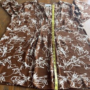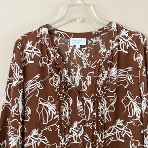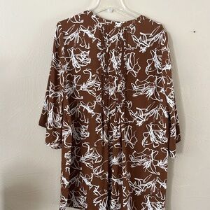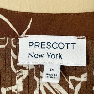 Prescott New York Pleaded V-neck Dress Flowing Fabric Wide 3/4 Sleeves Size 1X