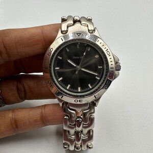 Prescott Watch Men Silver Tone Dark Gray Round 39MM Dial New Battery 7”