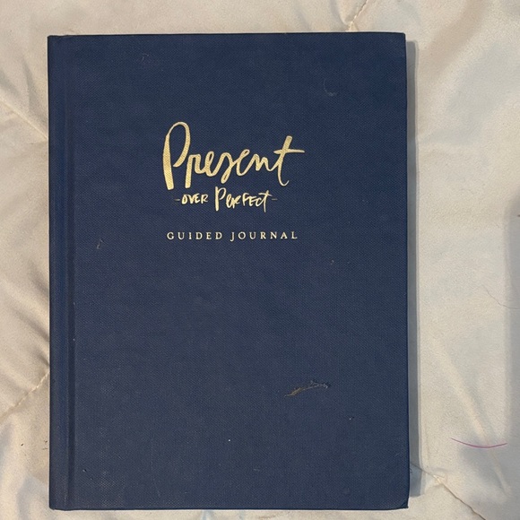 Blue guided journal with gold lettering. Perfect for personal reflection.