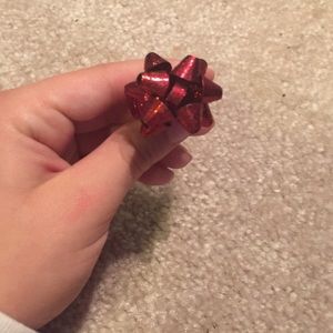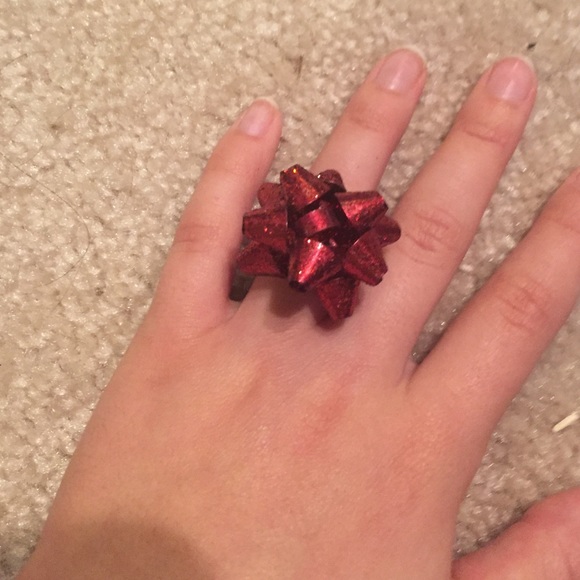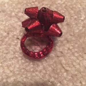Shimmering red present bow, stretchable ring to fit almost any finger.