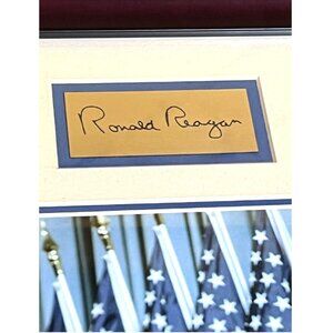 President Ronald Reagan Signature Memorial Wall Hanging Picture Brass Plaque in Frame 21 X 14"