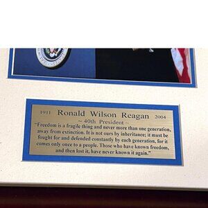 President Ronald Reagan Wall Hanging Picture Brass Plaque in Frame 21 X 14" Read