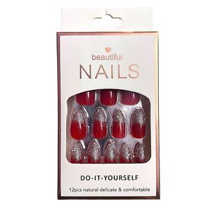 Beautiful press on nails in mauve color and silver glitter tips. Includes adhesive tabs.