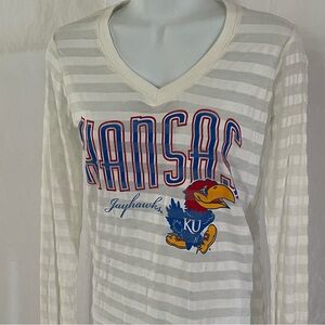 PressBox white Kansas Jayhawks long sleeve with V-neck cut Sheer material New with tags Smoke free and pet free home Bundle and save more!