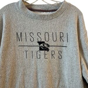 Keywords: Pressbox, medium, pullover, sweater, gray, Missouri Tigers, graphic print, cotton, polyester, vintage, casual, fall, machine washable, sports theme, college theme.