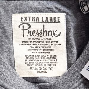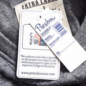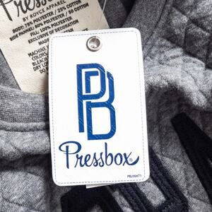 Style it with straight leg denim, joggers, or layered over a collared shirt for a vintage inspired campus look. The relaxed silhouette and substantial fabric make it easy to wear through cooler seasons while keeping the look polished rather than sloppy. New with tags, making it a strong pick for collectors of Pressbox collegiate pieces.
