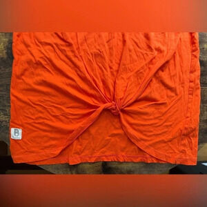 Pressbox by Royce Apparel | Clemson University women’s t-shirt. Size: L. Colors: orange, white, blue. Ladies Clemson v-neck, short sleeve tee. On the front left chest is a white Clemson Tigers/paw print logo. On the lower right side is Pressbox logo tag. The front, center is a twist. The sleeves have a blue and white stripe. Like new condition.